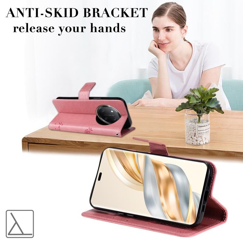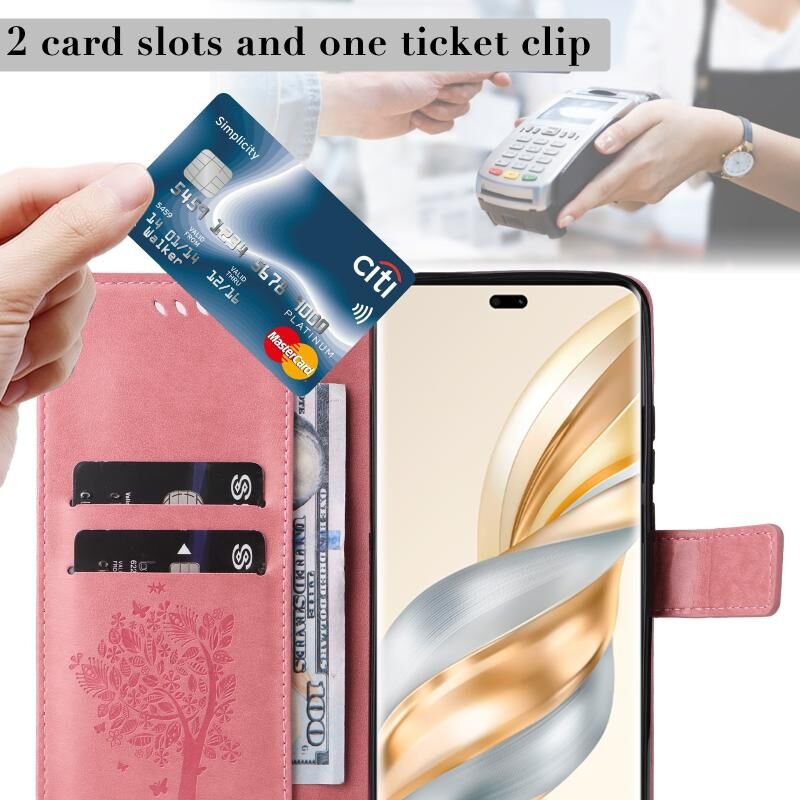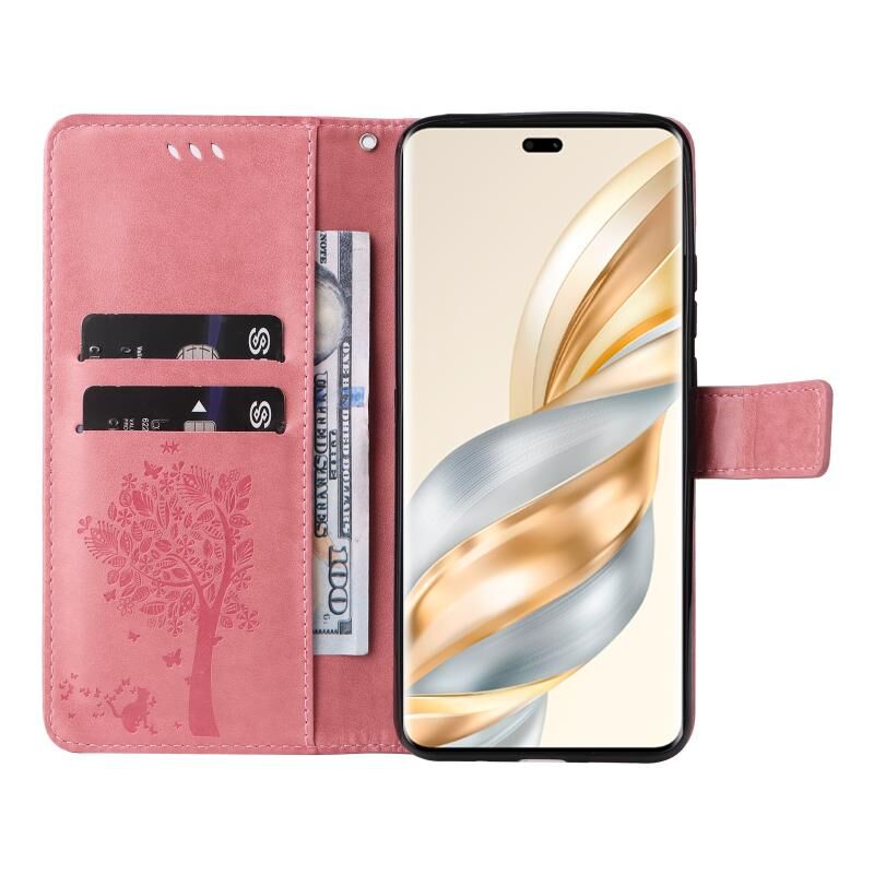 Θήκη τηλεφώνου από δέρμα με σχέδιο ανάγλυφου δέντρου & γάτας για Honor X9C 5G (ρόζ)