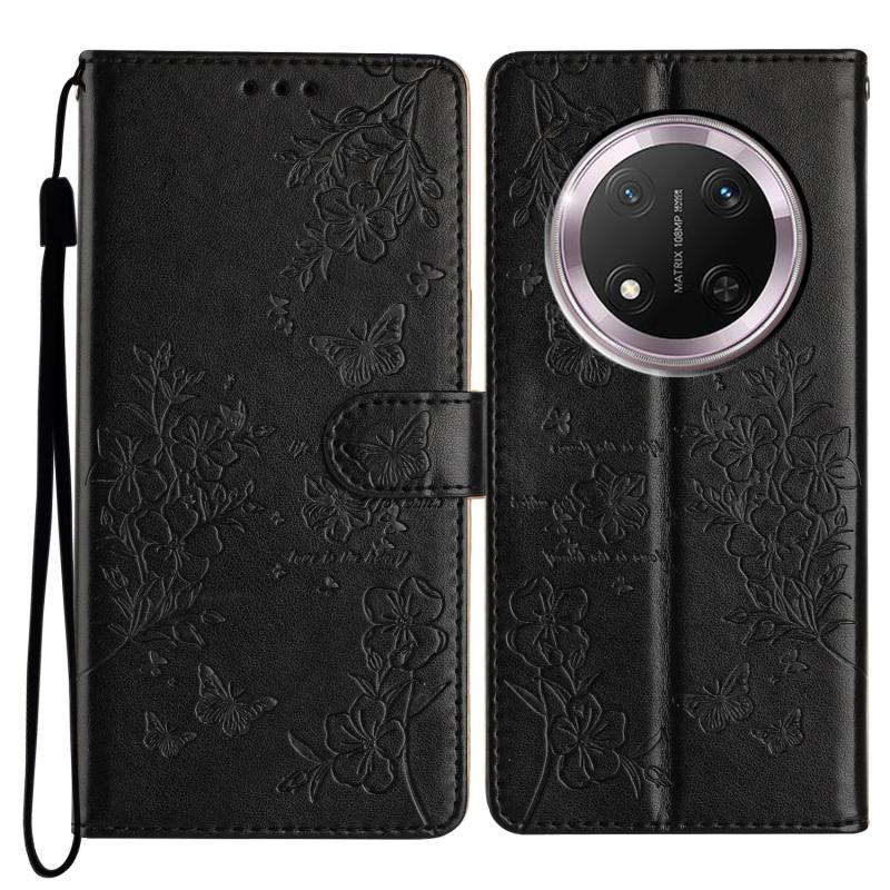 For Honor X9c Butterflies And Flowers Leather Phone Case(Black)
