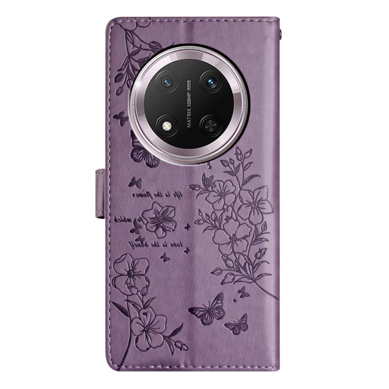 For Honor X9c Butterflies And Flowers Leather Phone Case(Purple)