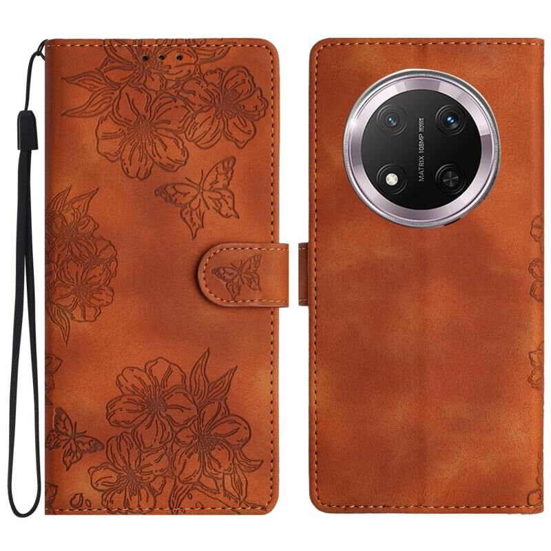 For Honor X9c Cherry Blossom Butterfly Skin Feel Embossed PU Phone Case(Brown)