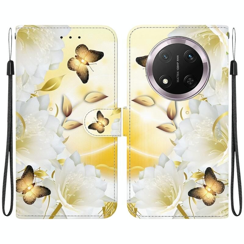 Θήκη τηλεφώνου από δέρμα με πολύχρωμη σχεδίαση και κρυσταλλική υφή για Honor X9c (Μωβ Παιώνια)