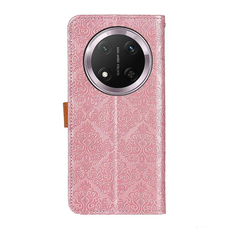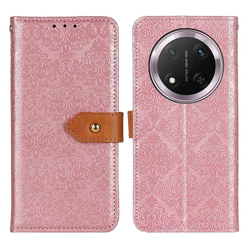 Για Honor X9C Ευρωπαϊκή Floral ανάγλυφο δέρμα τηλέφωνο υπόθεση (ροζ)