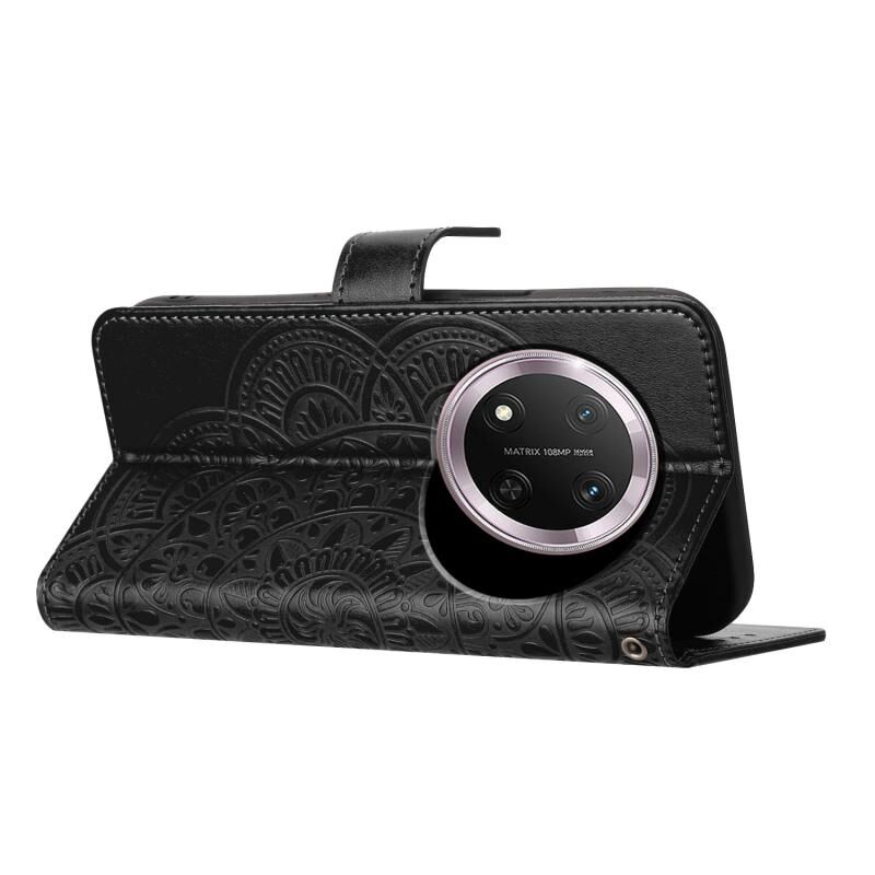 Θήκη τηλεφώνου Honor X9c από δέρμα με ανάγλυφο λουλούδι (Κόκκινο)