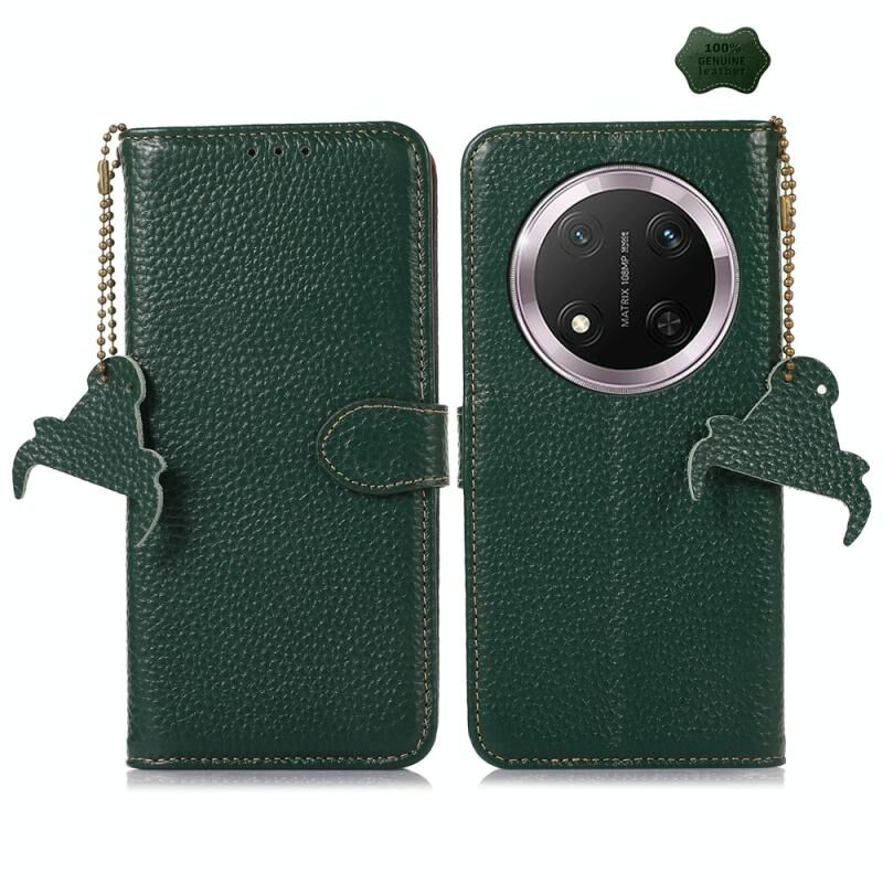 Θήκη τηλεφώνου από γνήσιο δέρμα Litchi για Honor X9c με προστασία RFID (Πράσινο)