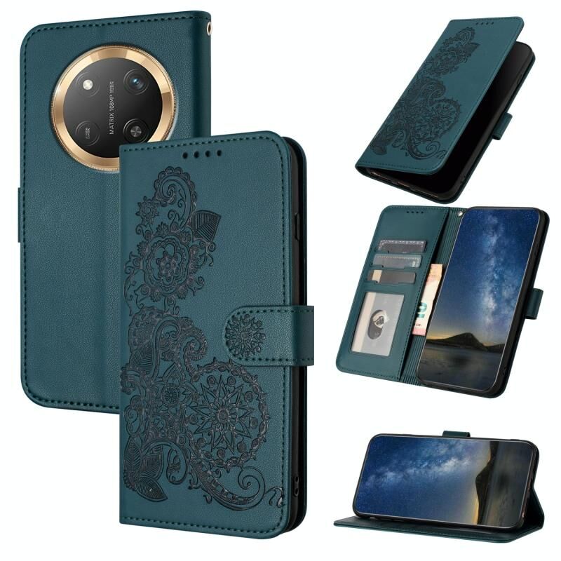 Για Honor X9c Παγκόσμια Datura λουλούδι ανάγλυφο Flip δερμάτινη θήκη τηλεφώνου (σκούρο πράσινο)