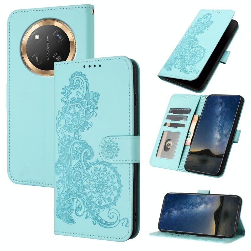 Για Honor X9c Παγκόσμια Datura λουλούδι ανάγλυφο Flip δερμάτινη θήκη τηλεφώνου (γαλάζιο)