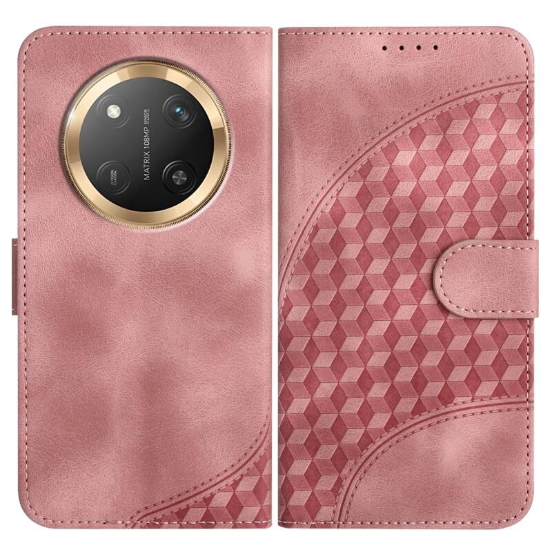 Θήκη τηλεφώνου από δέρμα με ανάγλυφο σχέδιο κεφαλής ελέφαντα για Honor X9c Global με κορδόνι (ρόζ)