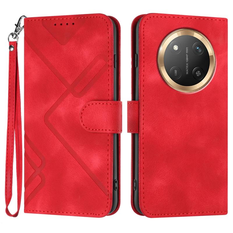 For Honor X9c Global Line Pattern Skin Feel Leather Phone Case(Red)