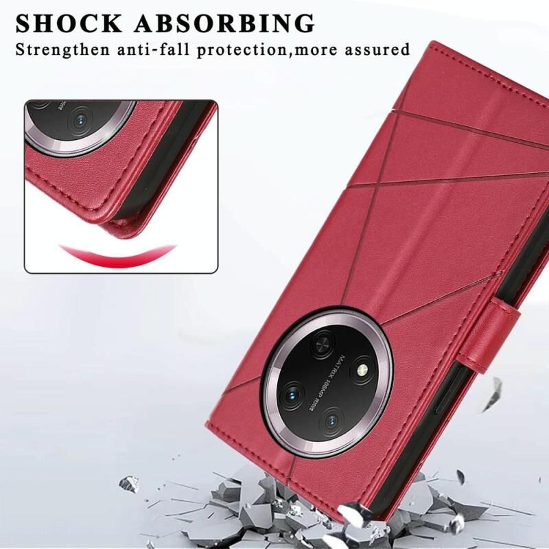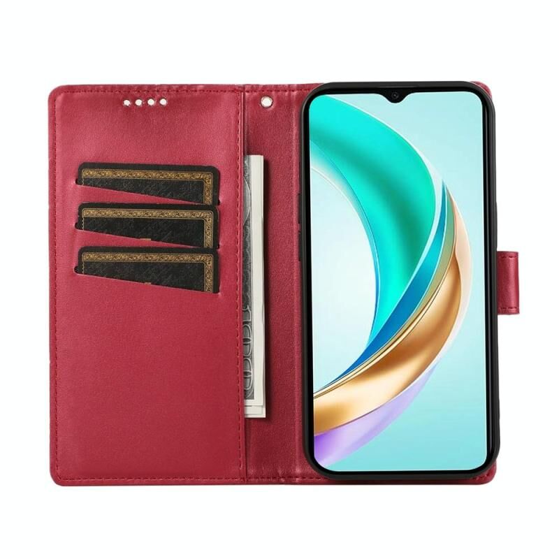 Θήκη τηλεφώνου με ανάγλυφη υφή γνήσιου δέρματος PU για Honor X9c Global / Magic7 Lite (Κόκκινο)
