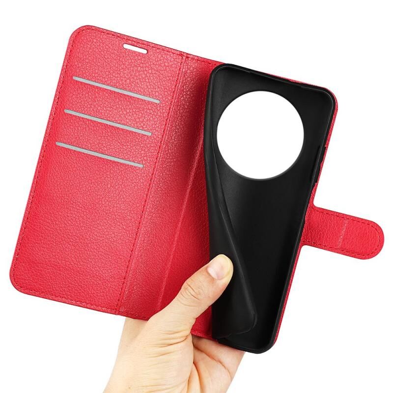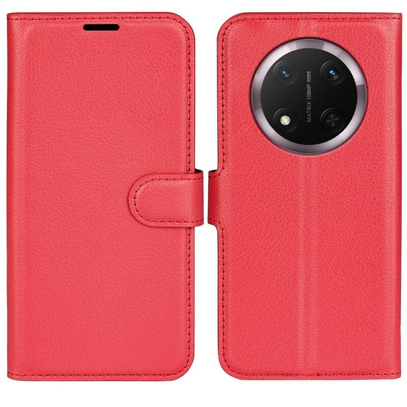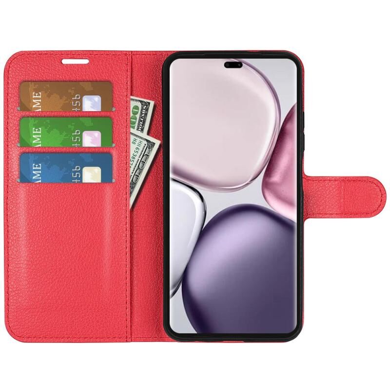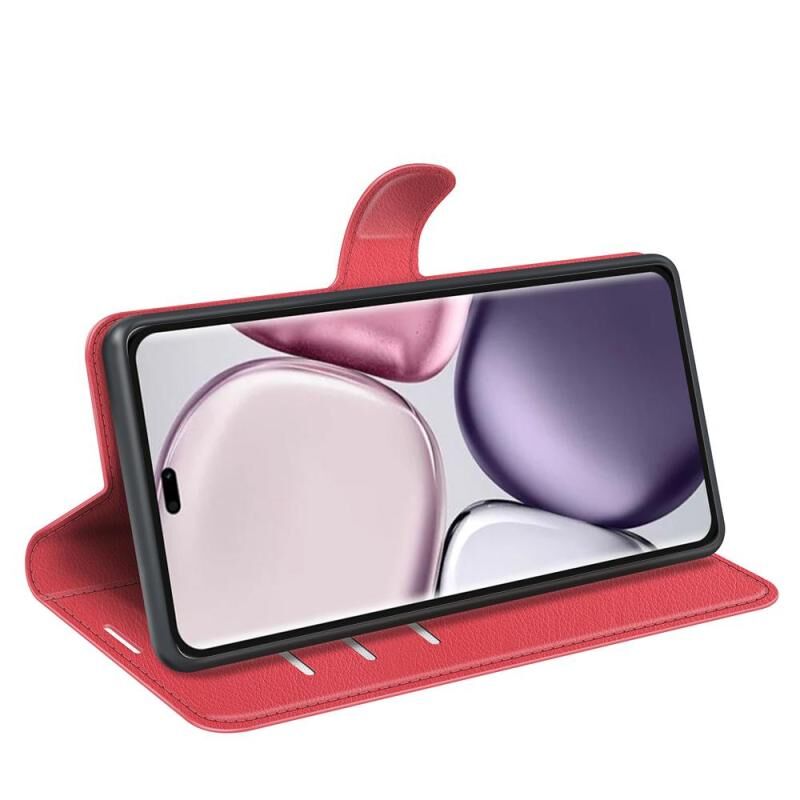 Θήκη τηλεφώνου από δέρμα με οριζόντιο άνοιγμα και υφή Litchi για Honor X9c με βάση στήριξης (Κόκκινο)