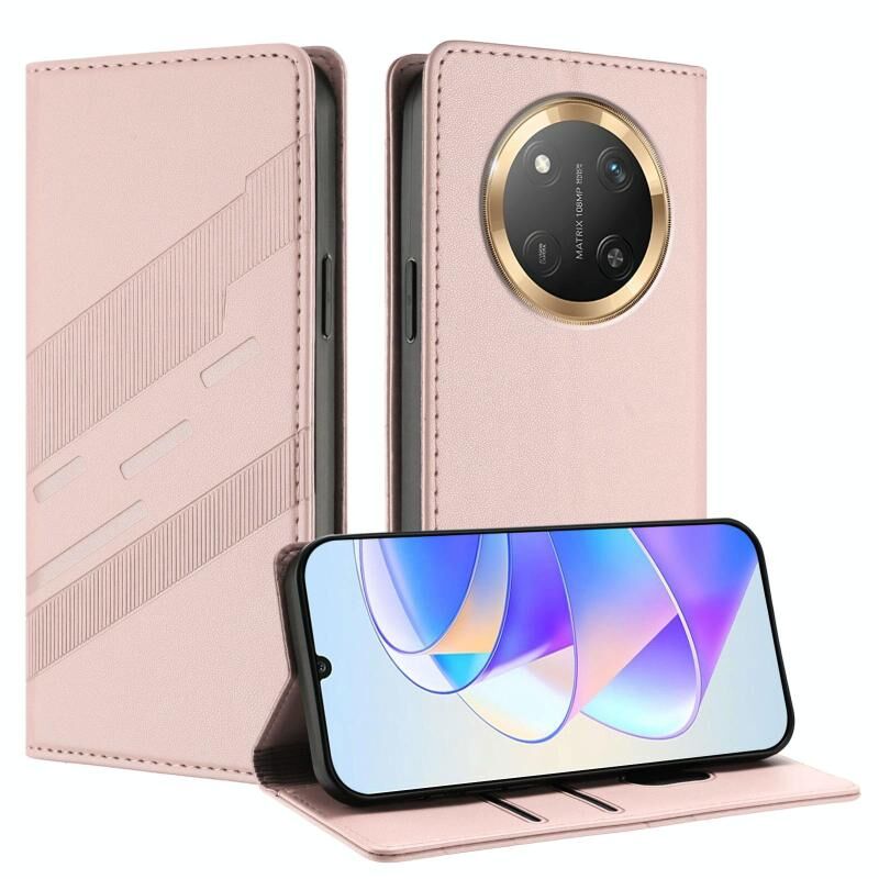 Θήκη τηλεφώνου από δέρμα με ανάγλυφο σχέδιο, πολυλειτουργική, τύπου πορτοφολιού για Honor X9c / Magic7 Lite (Μαύρο)