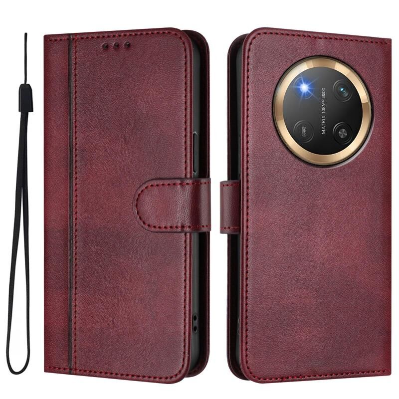 For Honor X9c / Magic7 Lite Line Splicing Buckle Retro Leather Phone Case(Wine Red)