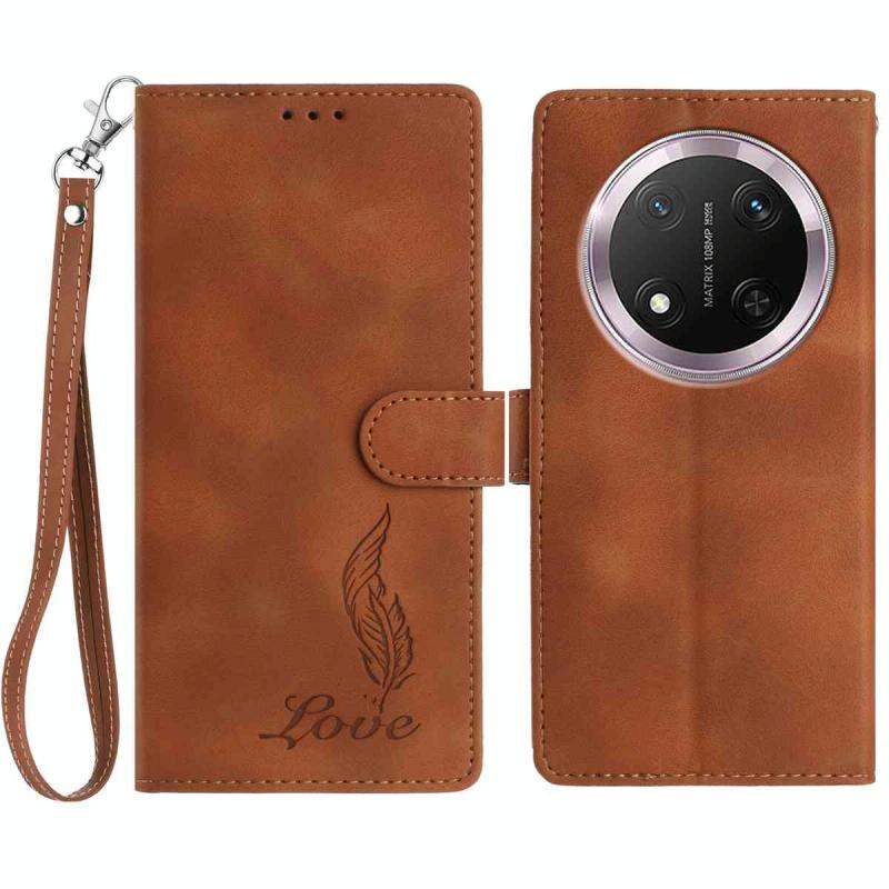 For Honor X9c Skin Feel Embossed Feather Leather Phone Case(Brown)