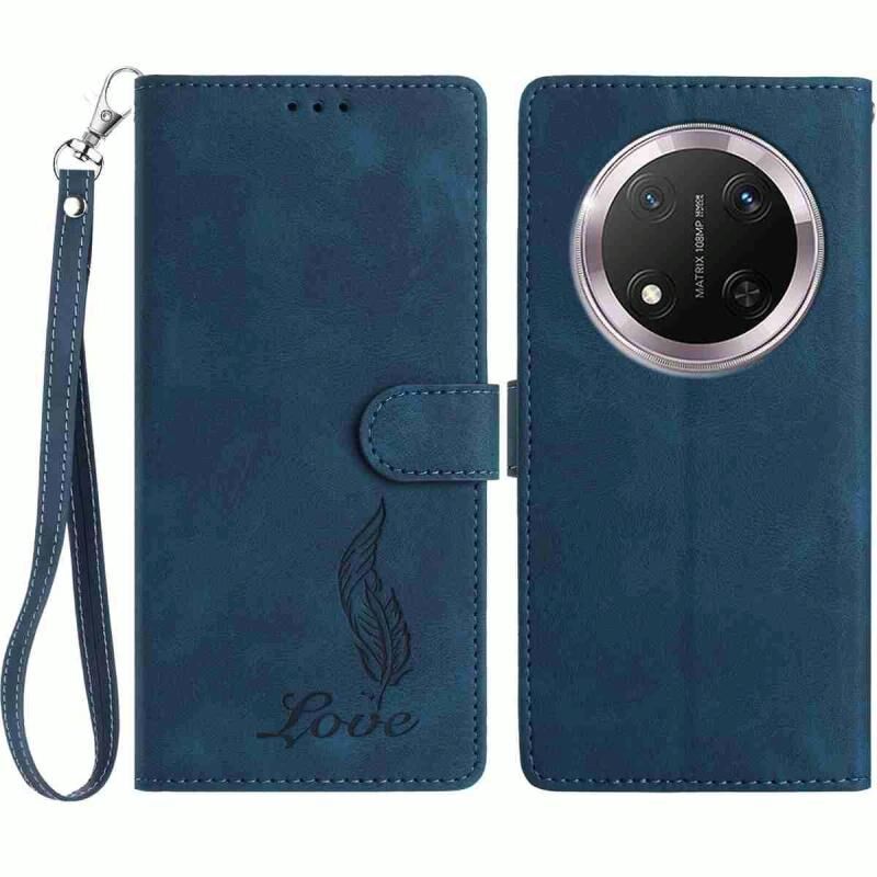 For Honor X9c Skin Feel Embossed Feather Leather Phone Case(Dark Blue)