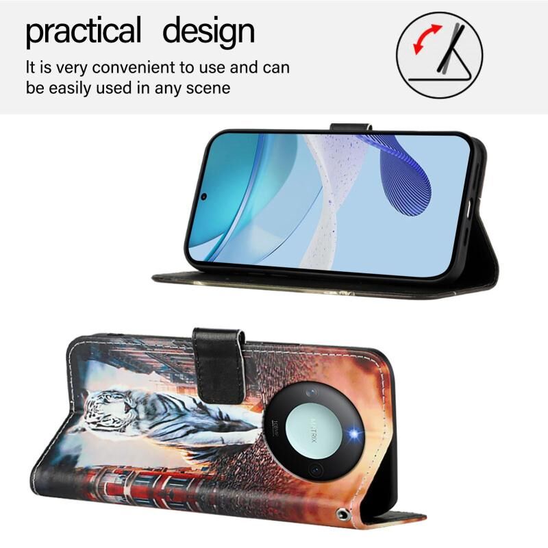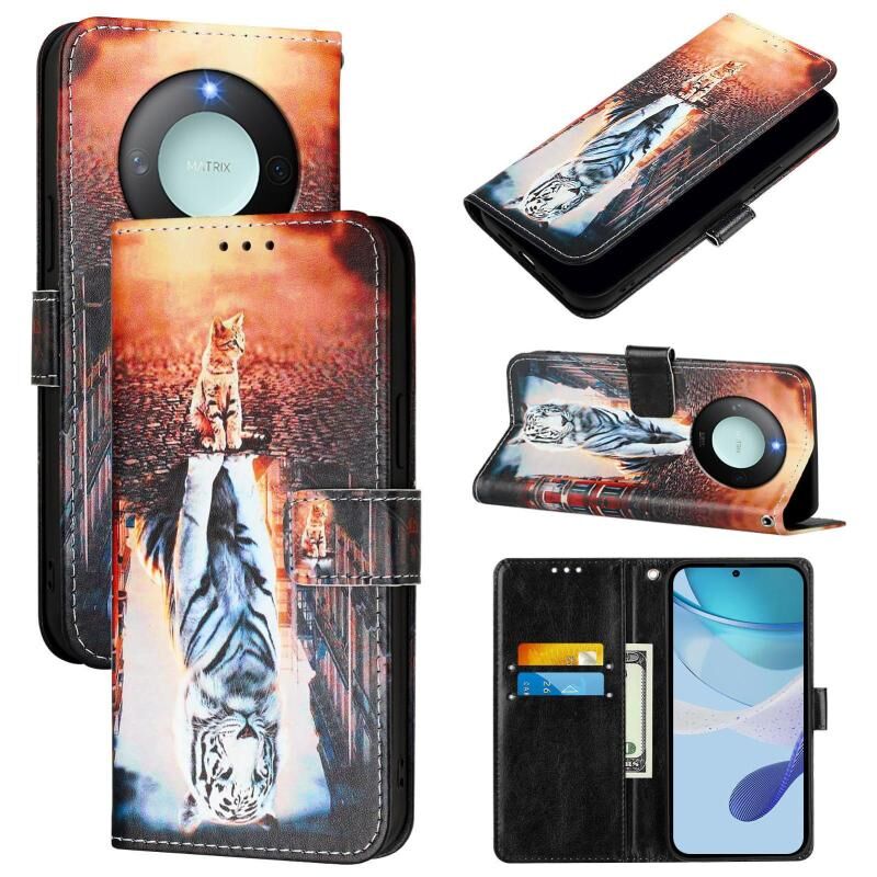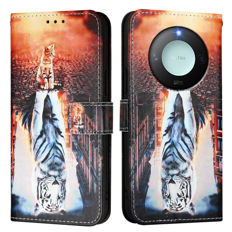 Θήκη τηλεφώνου από δέρμα με απλή ύφανση για Honor X9c Smart 5G με έγχρωμο σχέδιο (Γάτες και Τίγρεις)