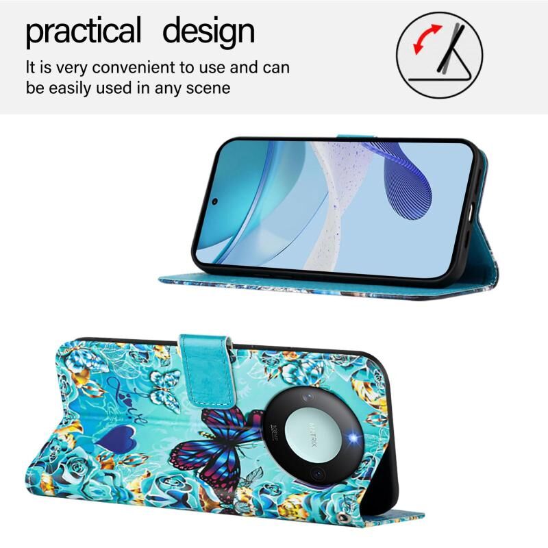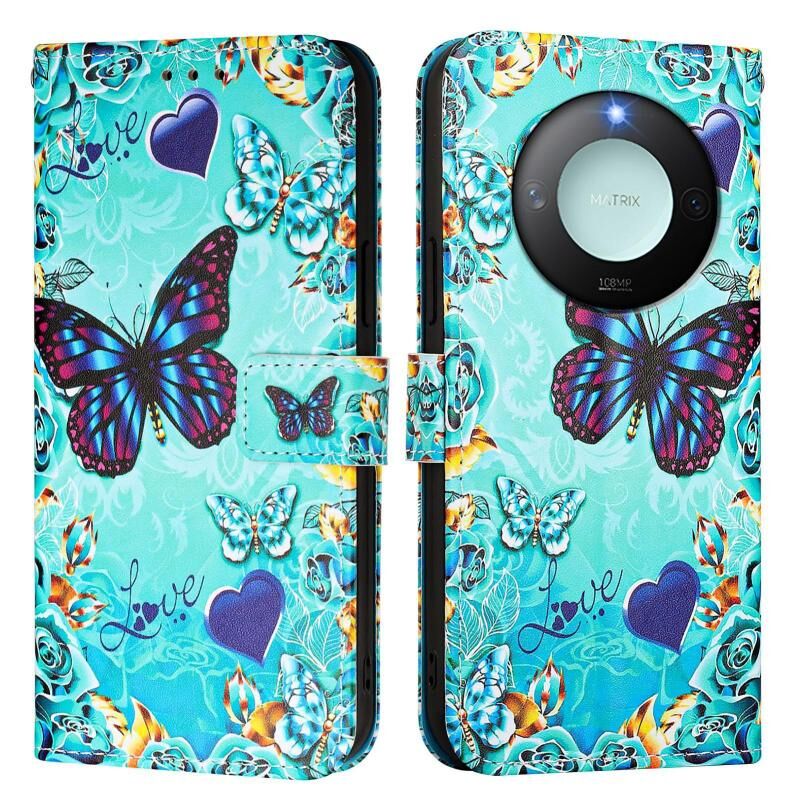 Θήκη τηλεφώνου από δέρμα με απλή ύφανση για Honor X9c Smart 5G με έγχρωμο σχέδιο (Αγάπη Πεταλούδα)