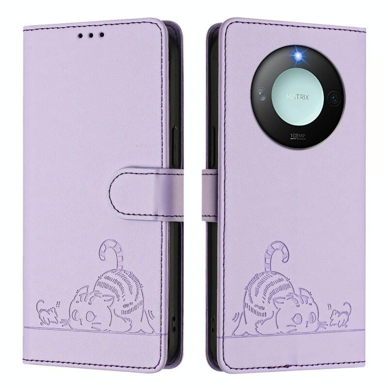 Θήκη τηλεφώνου από δέρμα με ανάγλυφο σχέδιο γάτας και κατσαρίδας, με λουρί για Honor X9c Smart 5G Global (Μέντας Πράσινο) με προστασία RFID.