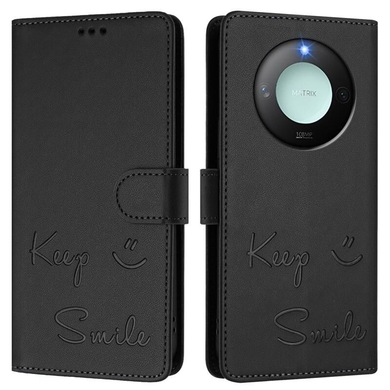 Θήκη τηλεφώνου από δέρμα με ανάγλυφο χαμόγελο και τεχνολογία RFID για Honor X9c Smart 5G (Μαύρο)