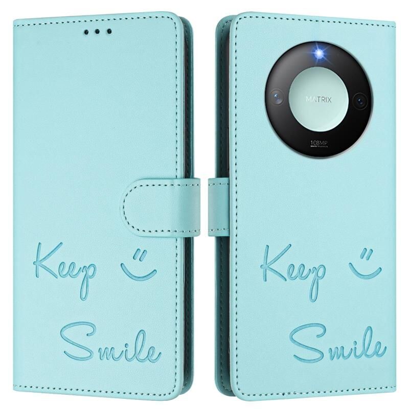Θήκη τηλεφώνου από δέρμα με ανάγλυφο χαμόγελο και τεχνολογία RFID για Honor X9c Smart 5G (Μέντας πράσινο)