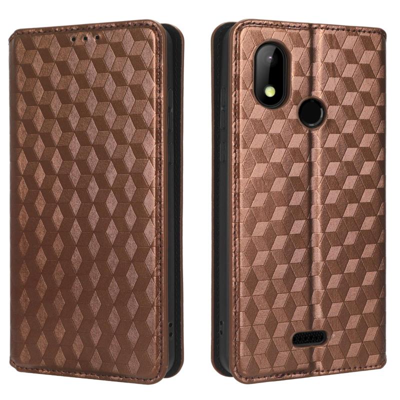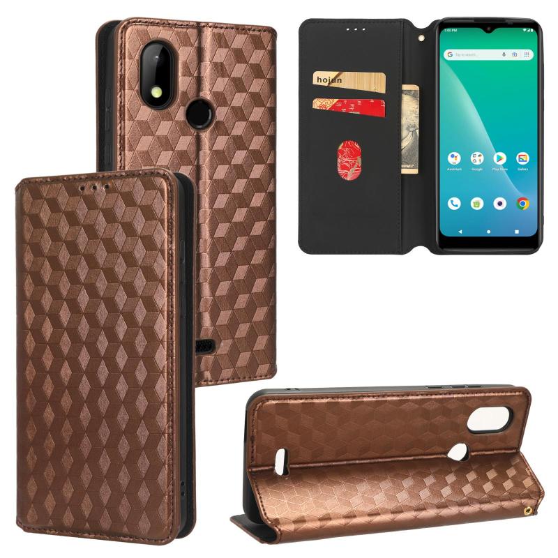 For HotPepper Chilaca HPPL60A Cubic Grid Texture Flip Leather Phone Case(Brown)