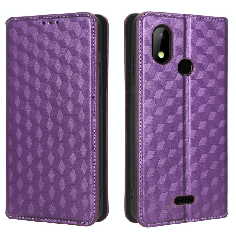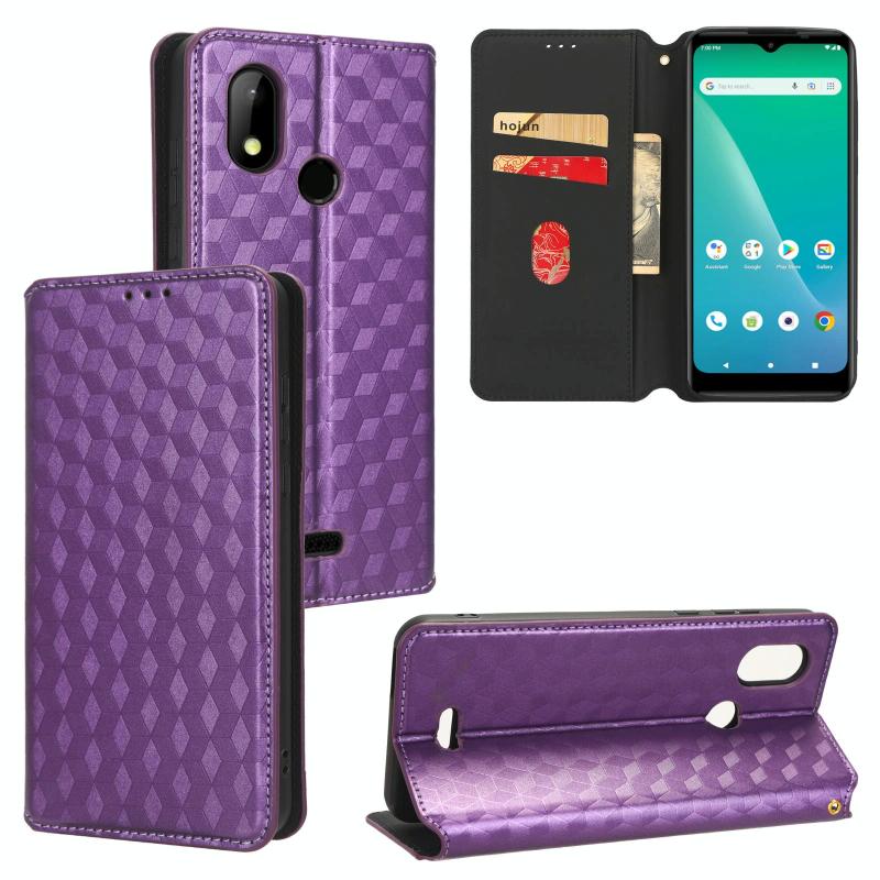 For HotPepper Chilaca HPPL60A Cubic Grid Texture Flip Leather Phone Case(Purple)