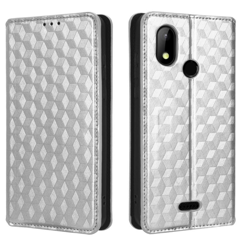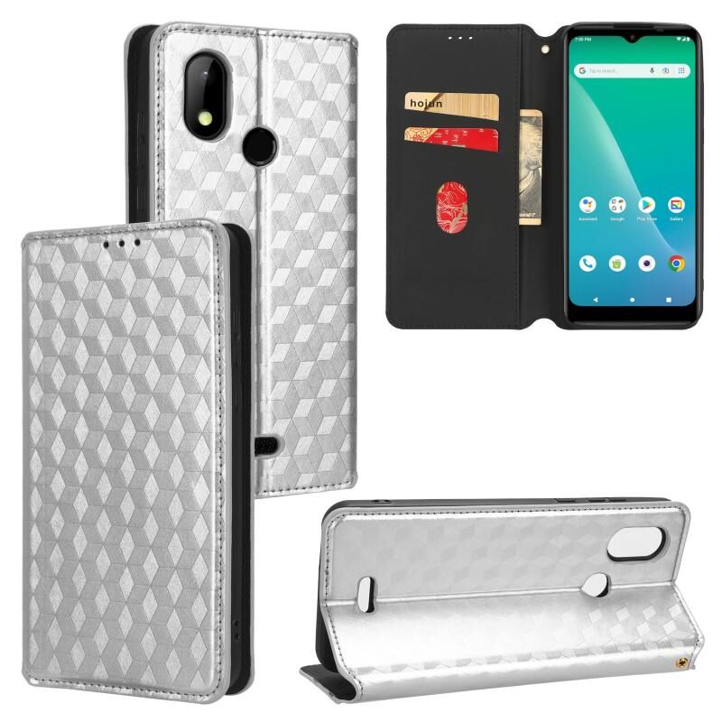 For HotPepper Chilaca HPPL60A Cubic Grid Texture Flip Leather Phone Case(Silver)