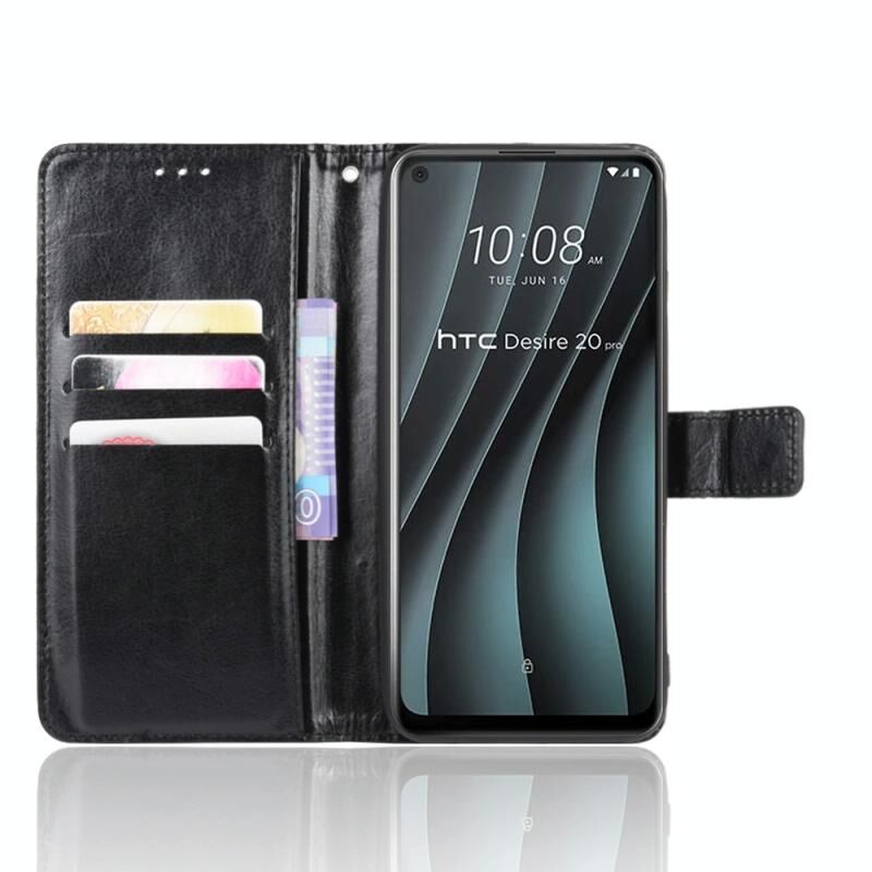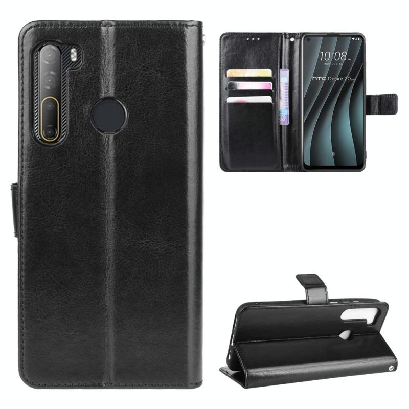 For HTC Desire 20 Pro Retro Crazy Horse Texture Horizontal Flip Leather Case , with Holder & Card Slots & Photo Frame(Black)