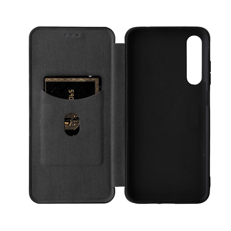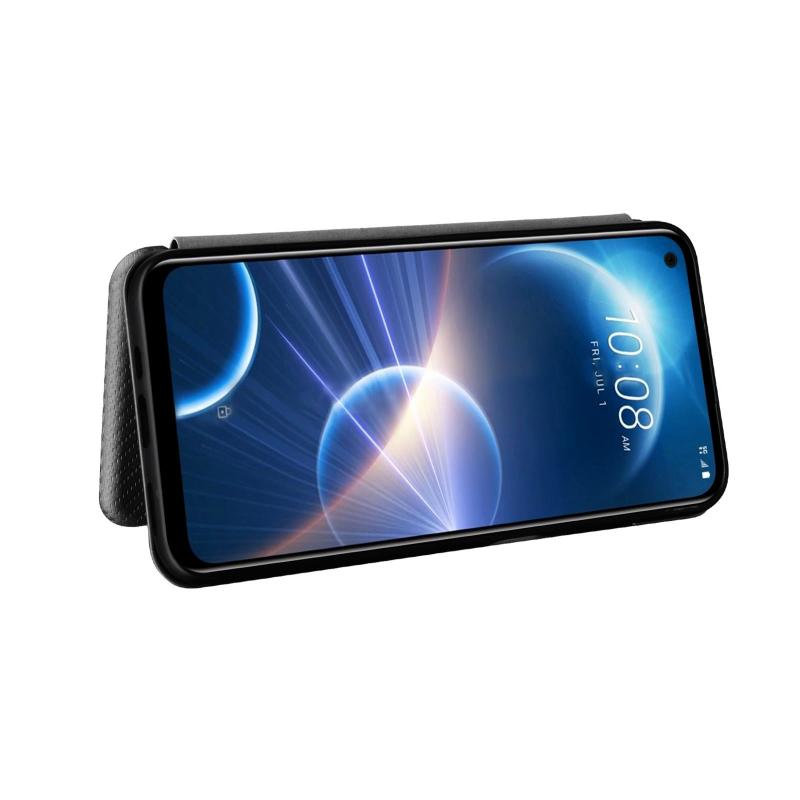 Θήκη τηλεφώνου δερμάτινη, τύπου flip, με υφή ανθρακονημάτων για HTC Desire 22 Pro (Μαύρο)