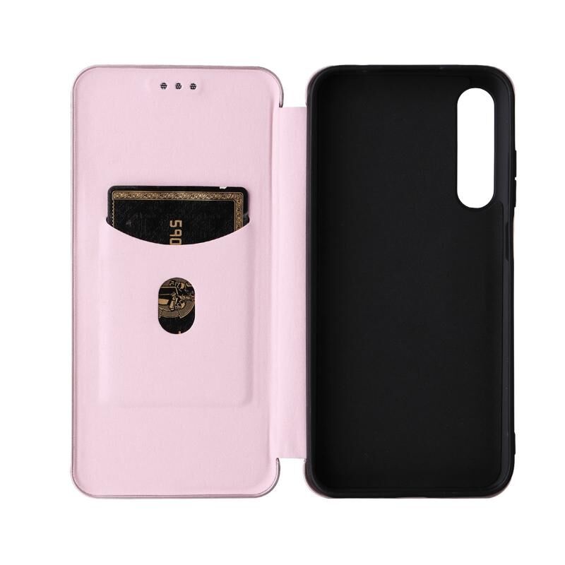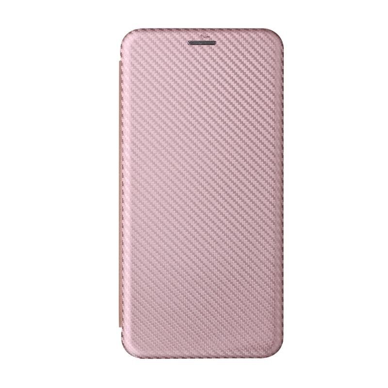 Θήκη τηλεφώνου δερμάτινη, τύπου flip, με υφή ανθρακονημάτων για HTC Desire 22 Pro (ρόζ)