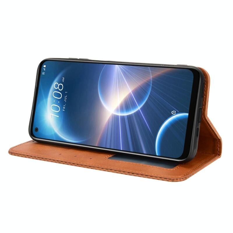 Για HTC Desire 22 Pro Μαγνητική πόρπη ρετρό υφή δερμάτινη θήκη τηλεφώνου (καφέ)