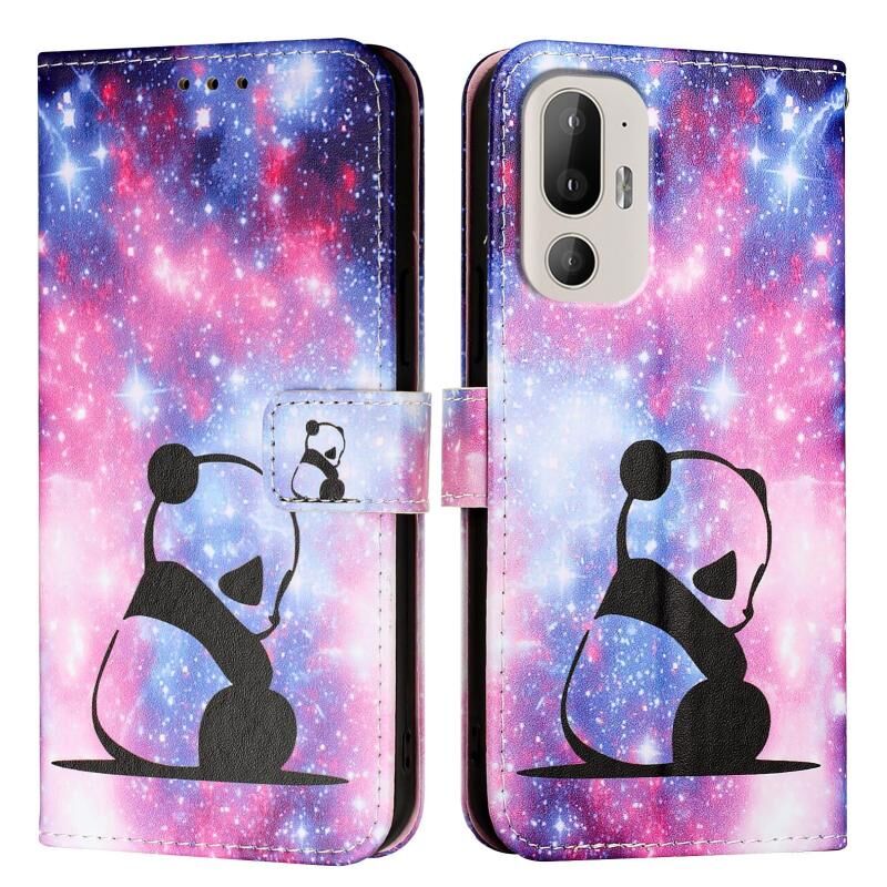 Θήκη τηλεφώνου από δέρμα με απλή ύφανση και πολύχρωμο σχέδιο για HTC U24 Pro (Μωρό Πάντα)