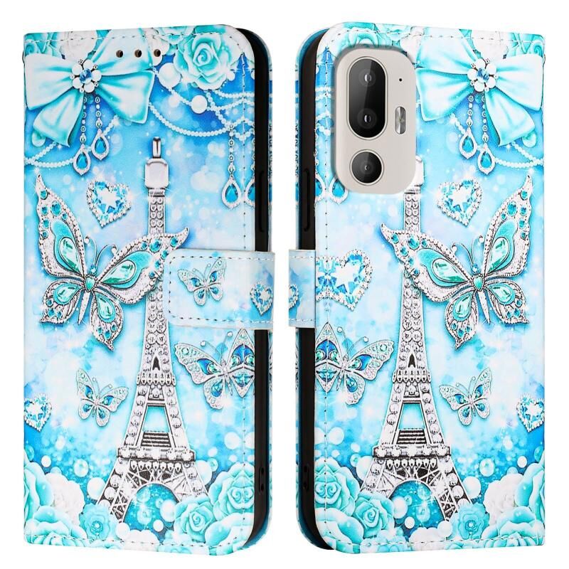Θήκη τηλεφώνου από δέρμα με απλή ύφανση και πολύχρωμο σχέδιο για HTC U24 Pro (Πύργος Πεταλούδας)