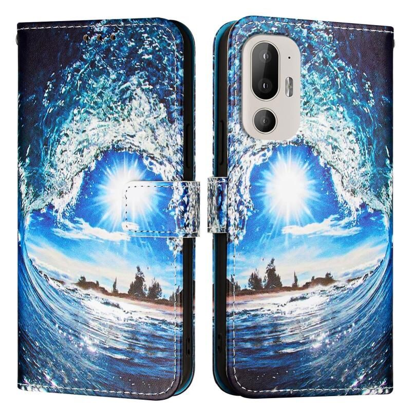 For HTC U24 Pro Colored Drawing Pattern Plain Weave Leather Phone Case(Waves And Sun)