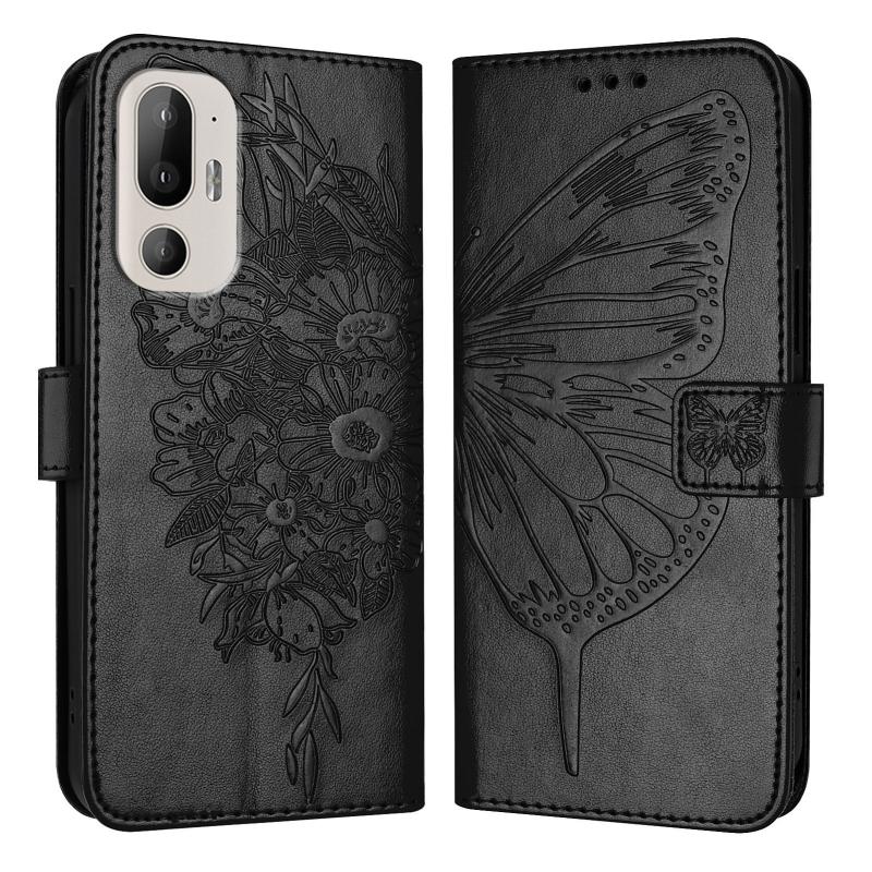 For HTC U24 Pro Embossed Butterfly Leather Phone Case(Black)