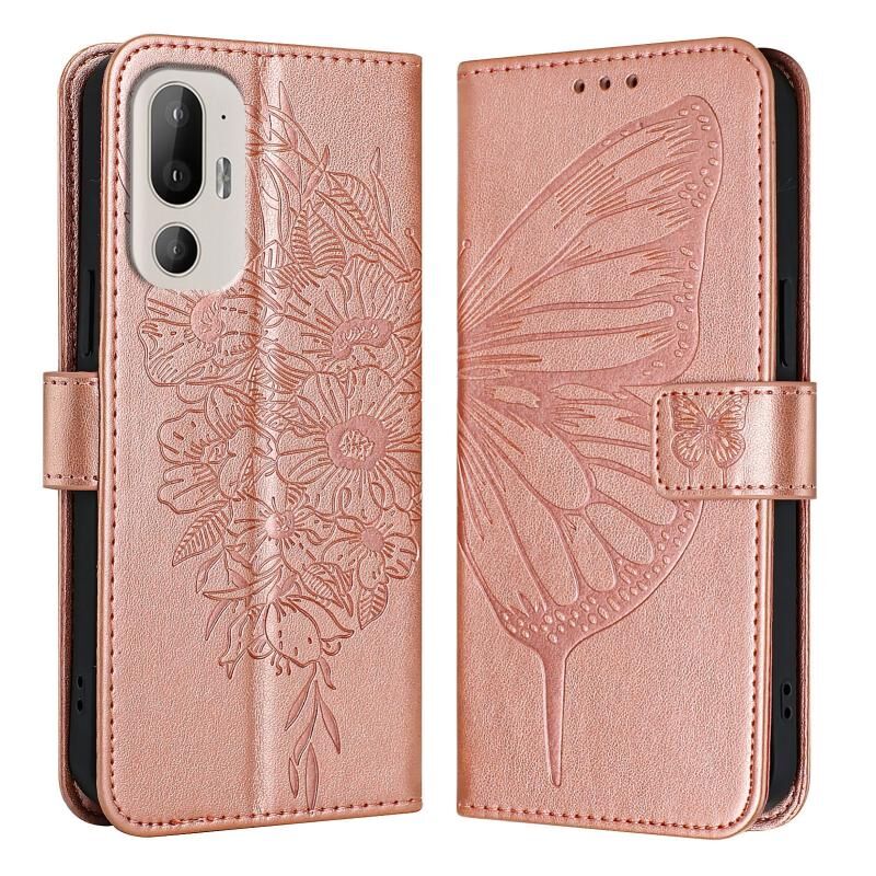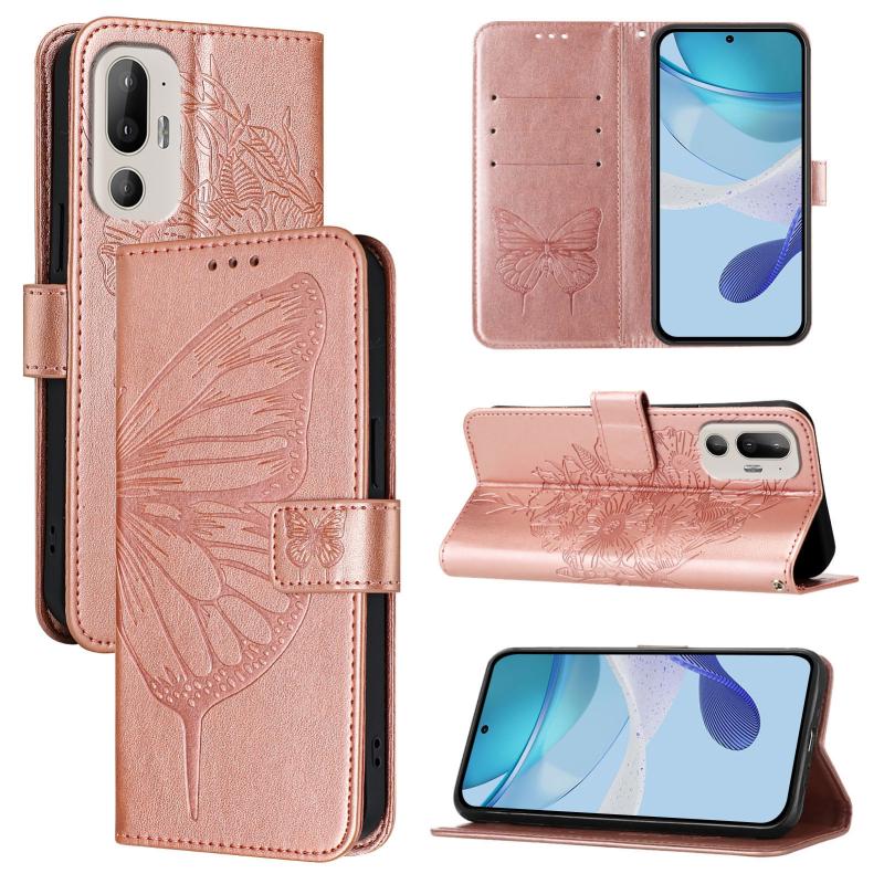 For HTC U24 Pro Embossed Butterfly Leather Phone Case(Rose Gold)