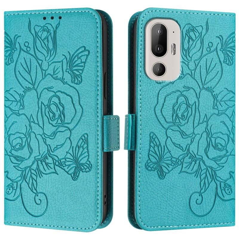 Για HTC U24 Pro ανάγλυφο Rose RFID Anti-theft δερμάτινη θήκη τηλεφώνου (Ανοιχτό μπλε)