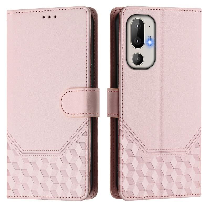 For HTC U24 Pro Honeycomb Embossing RFID Leather Phone Case(Pink)
