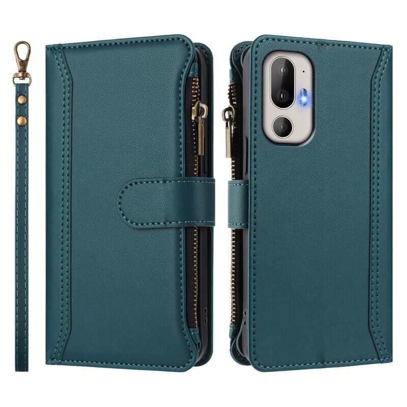 For HTC U24 Pro Magnetic Closure 9 Card Slots Zipper Leather Case with Hand Strap(Dark Green)