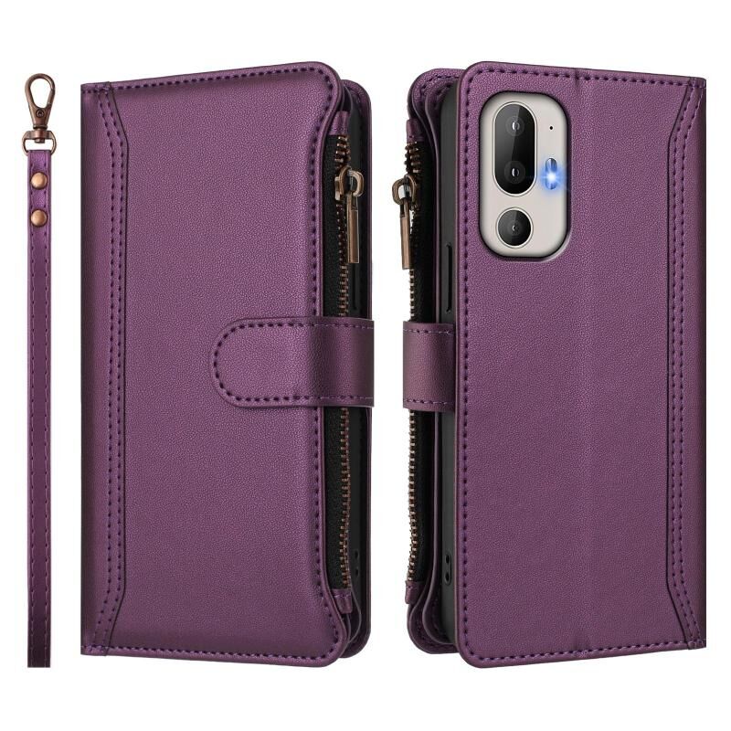 For HTC U24 Pro Magnetic Closure 9 Card Slots Zipper Leather Case with Hand Strap(Purple)