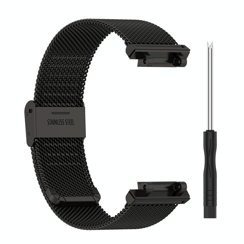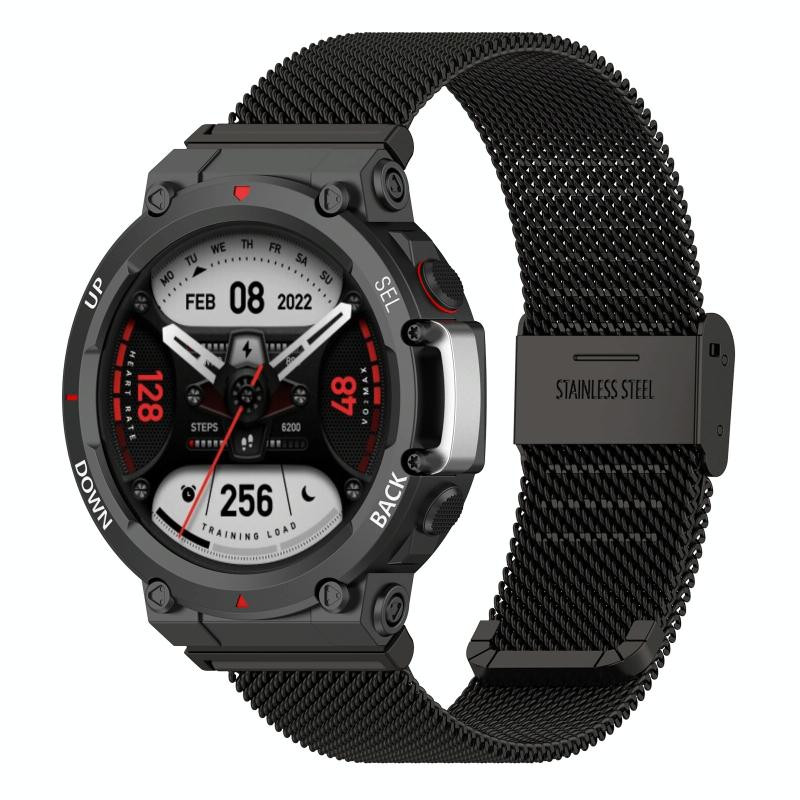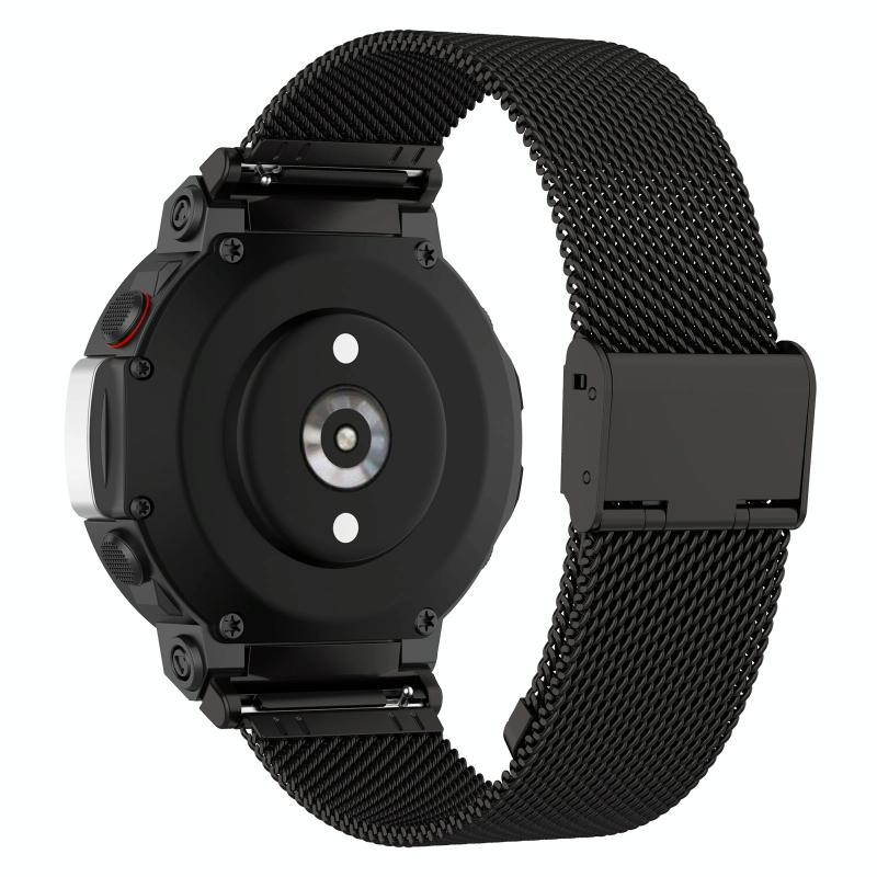 For Huami Amazfit T-Rex 2 Snap-fit Stainless Steel Mesh Watch Band(Black)
