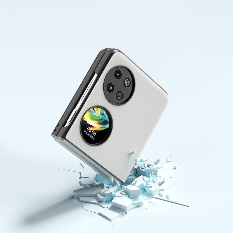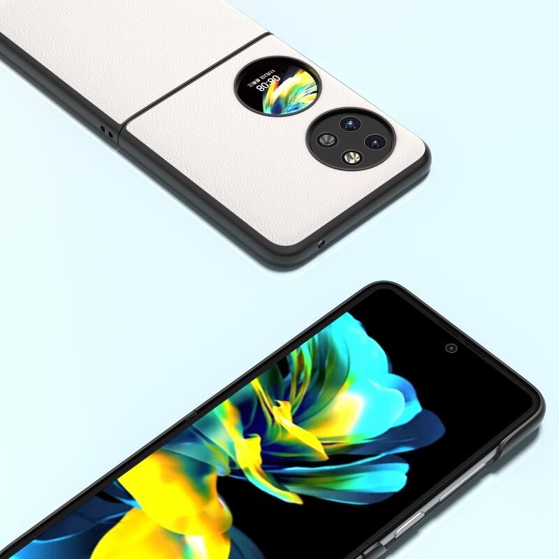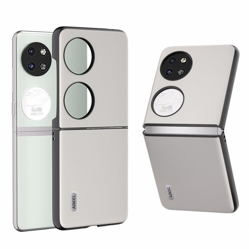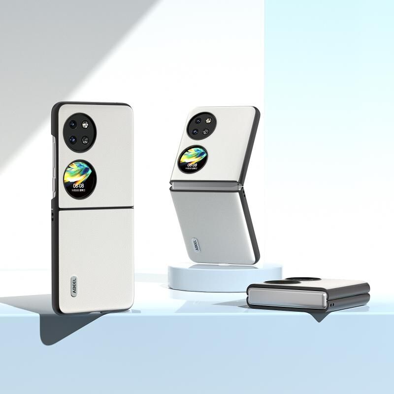 Θήκη τηλεφώνου από γνήσιο δέρμα για Huawei Pocket 2 ABEEL, κομψή, μαύρη άκρη (Λευκό)