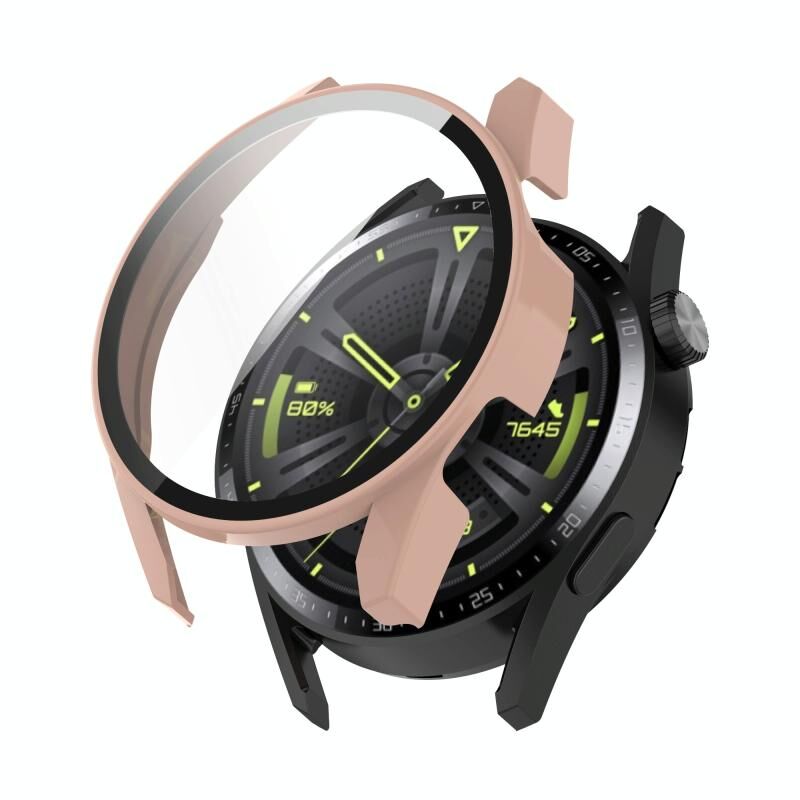 Για το Huawe Watch GT 3 46mm Θήκη PC με αντικραδασμική προστασία και μεμβράνη από γυαλί (ροζ)