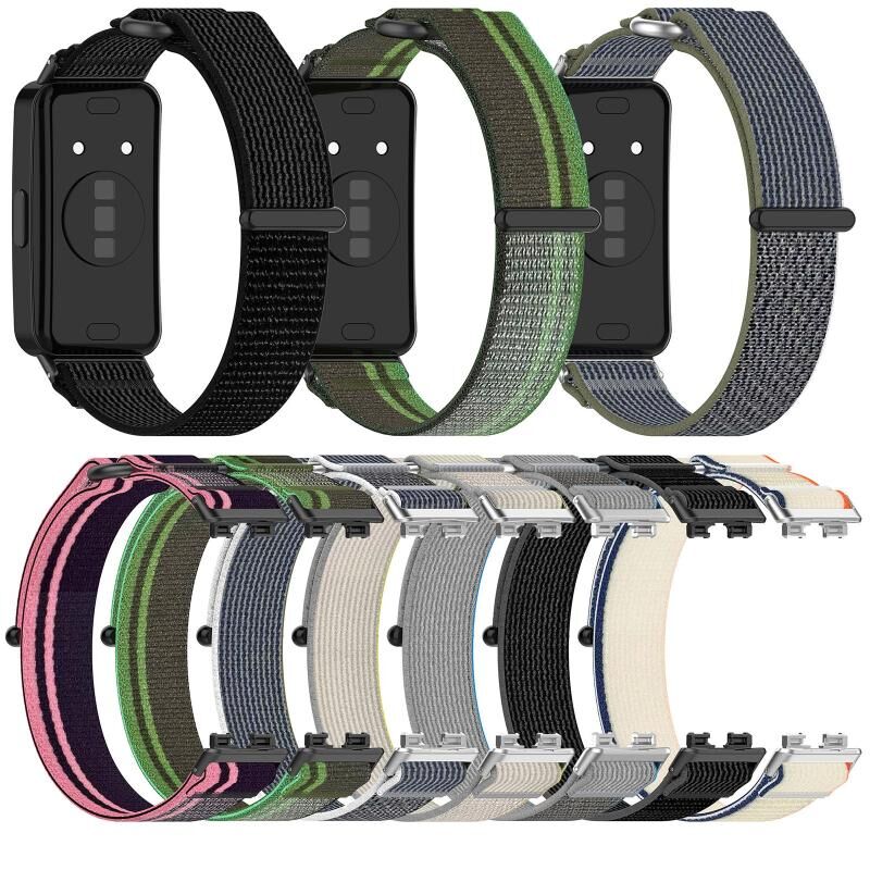 For Huawei Band 10 / 10 NFC / 9 / 9 NFC / 8 / 8 NFC Loop Nylon Hook and Loop Fastener Watch Band(Black Gray)