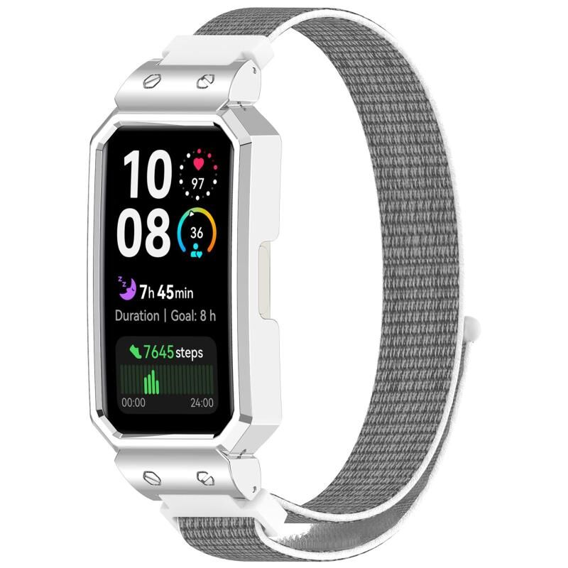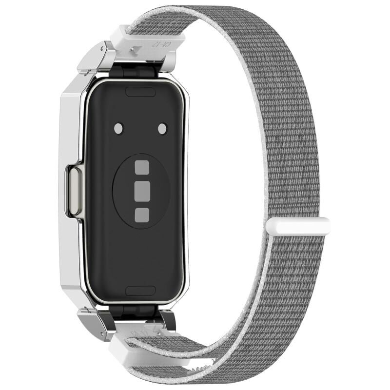 For Huawei Band 10 / 10 NFC / 9 / 9 NFC Watch Frame Integrated Nylon Loop Watch Band(Seashell+Silver)