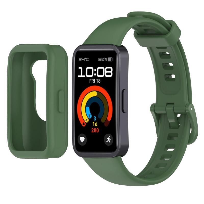 Για Huawei Band 10 / 9 / 8 Θήκη Ρολογιού με Έγχρωμο Κουμπί, Ενσωματωμένο Λουράκι Σιλικόνης (Πράσινο Χακί)