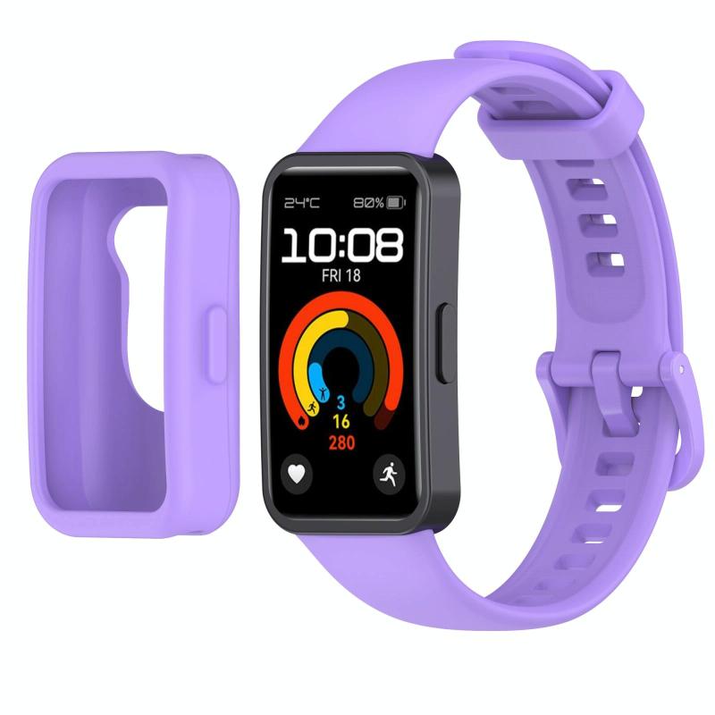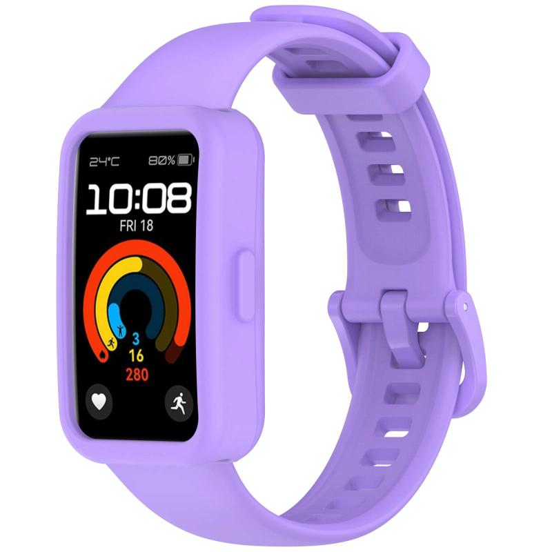 Για Huawei Band 10 / 9 / 8 Θήκη ρολογιού με έγχρωμο κουμπί, ενσωματωμένο λουράκι σιλικόνης (Λιλά)
