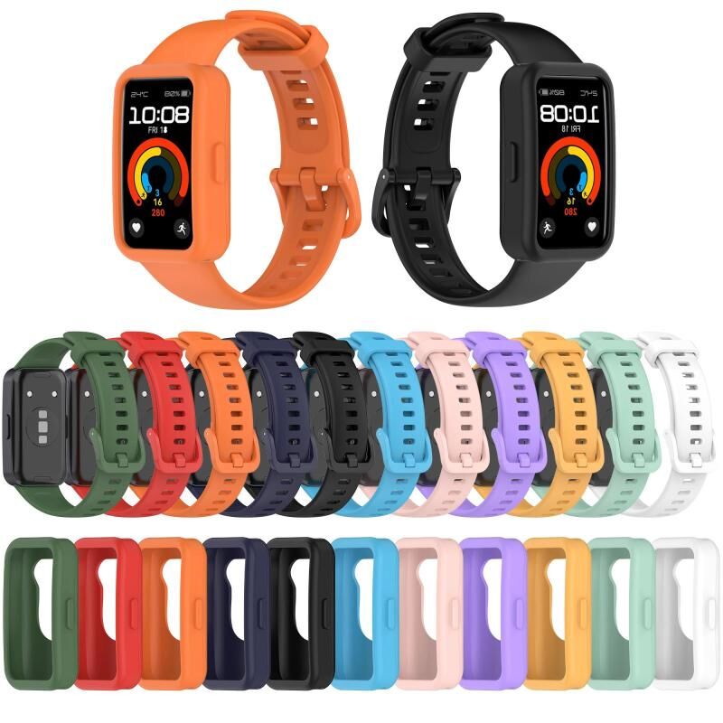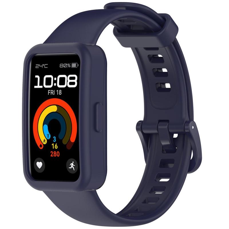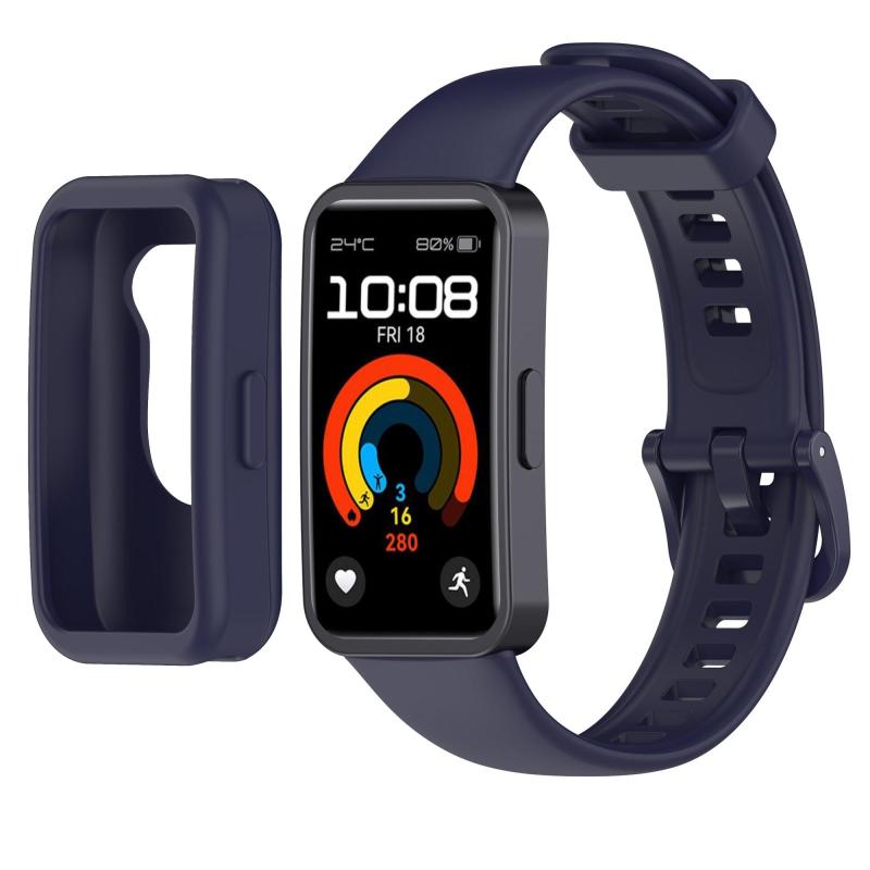 Για Huawei Band 10 / 9 / 8 Θήκη Ρολογιού με Έγχρωμο Κουμπί, Ενσωματωμένο Λουράκι Σιλικόνης (Ναυτικό μπλε)