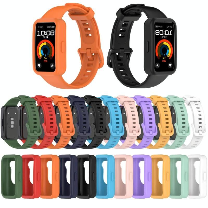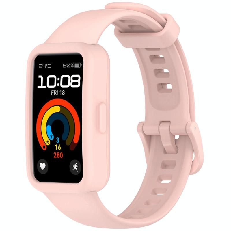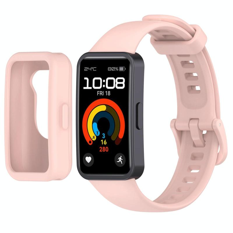 Για Huawei Band 10 / 9 / 8 Θήκη Ρολογιού με Έγχρωμο Κουμπί, Ενσωματωμένο Λουράκι Σιλικόνης (ρόζ)