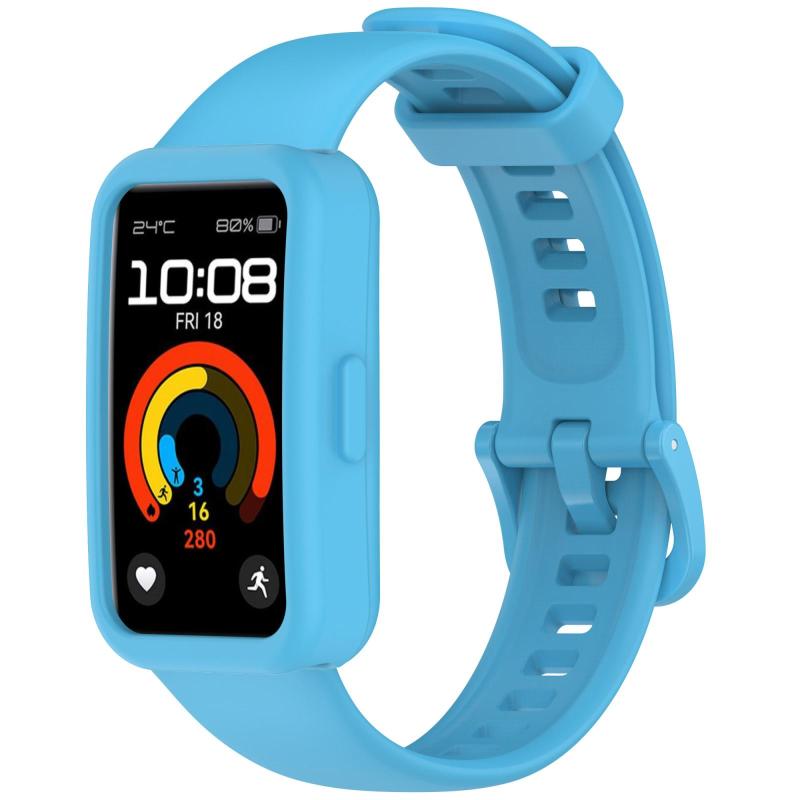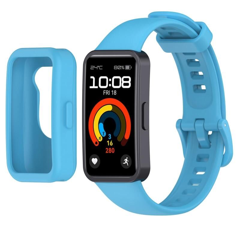 Για Huawei Band 10 / 9 / 8 Θήκη Ρολογιού με Έγχρωμο Κουμπί, Ενσωματωμένο Λουράκι Σιλικόνης (Γαλάζιο του ουρανού)