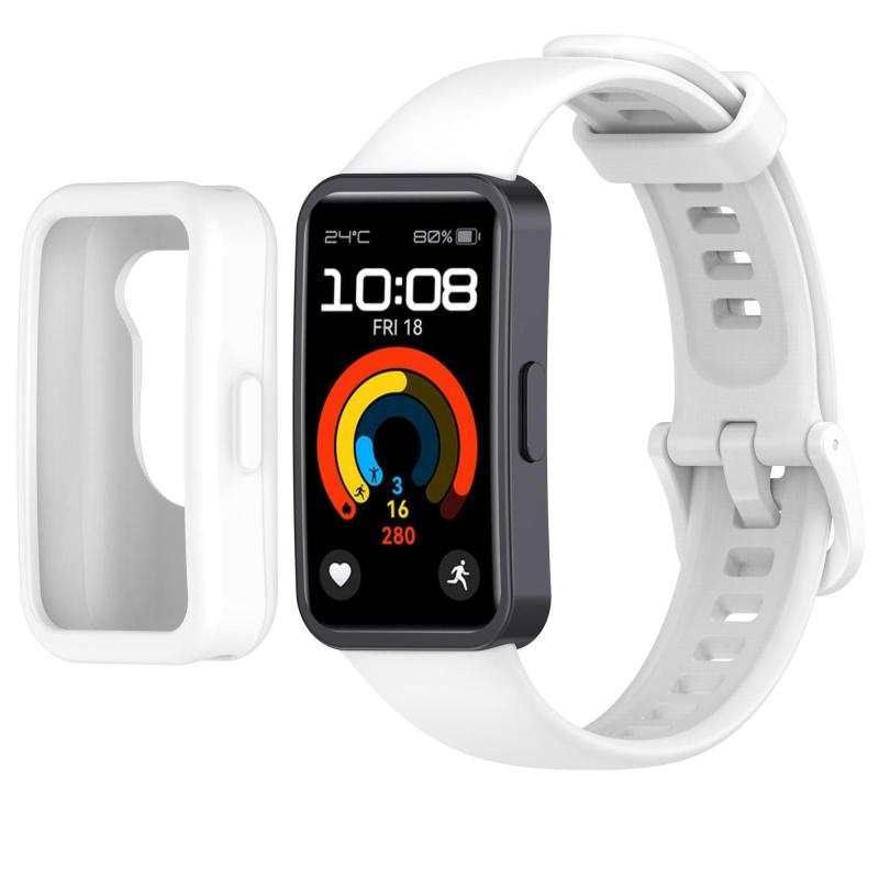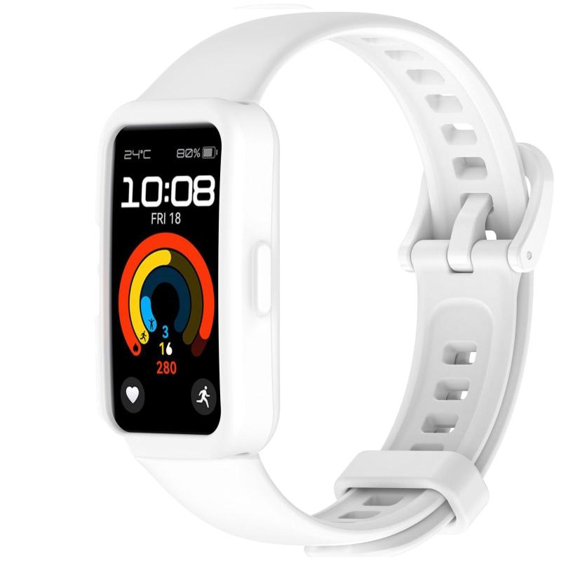 Για Huawei Band 10 / 9 / 8 Θήκη Ρολογιού με Έγχρωμο Κουμπί, Ενσωματωμένο Λουράκι Σιλικόνης (Λευκό)